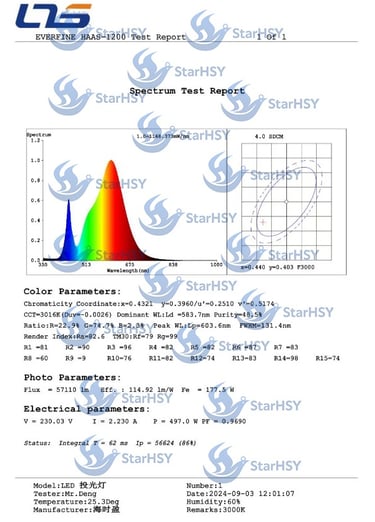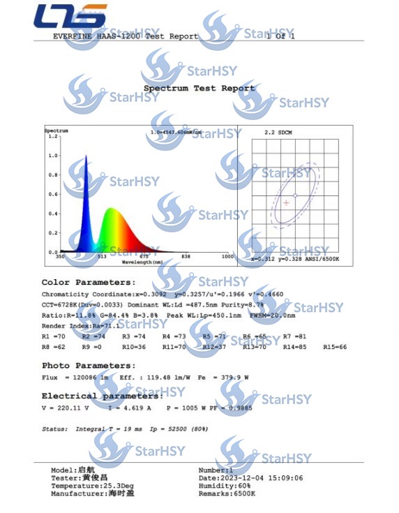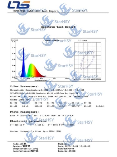 Independent spectrum analysis of StarHSY LED fishing lights shows two critical wavelength features: